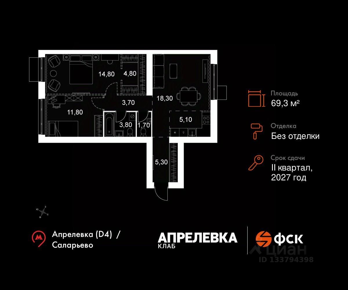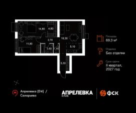 Продаётся 3-к квартира 190 общей площадью 69.3 кв.м на 4-м этаже 5 этажного дома. Без отделки.