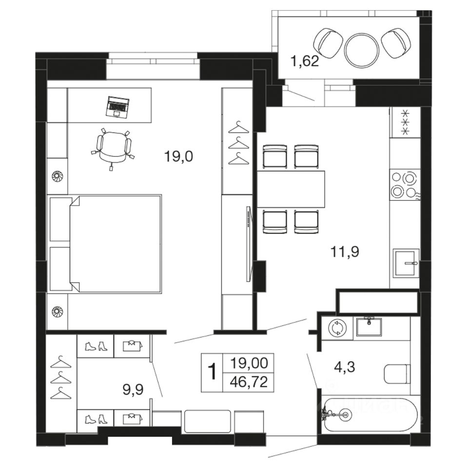 Различные варианты квартир эргономичных планировок от студий до трехкомнатных, площадью от 29,6 до 93,7 м² доступны покупателям.