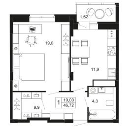 1-комн. квартира в ЖК комфорт-класса "Времена года" на 3 этаже в 9 этажном корпусе 2. Общая площадь: 46.7 кв.м., жилая: 19.00 кв.м. Высота потолков 2.76 м. "Времена года" современный жилой комплекс комфорт-класса, расположенный в тихом и зеленом подмосковном городе Апрелевка, в 1 минуте пешком от станции МЦД-4 "Победа".