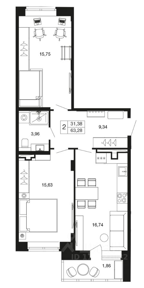 2-комн. квартира в ЖК комфорт-класса "Времена года" на 4 этаже в 9 этажном корпусе 12. Общая площадь: 63.3 кв.м., жилая: 31.38 кв.м. Высота потолков 2.76 м. "Времена года" современный жилой комплекс комфорт-класса, расположенный в тихом и зеленом подмосковном городе Апрелевка, в 1 минуте пешком от станции МЦД-4 "Победа".