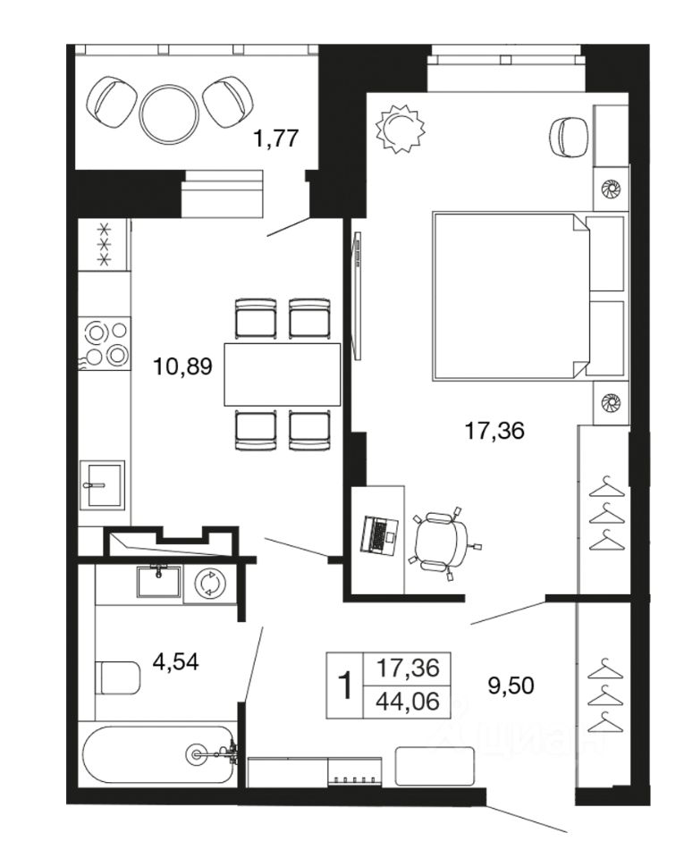 1-комн. квартира в ЖК комфорт-класса "Времена года" на 6 этаже в 9 этажном корпусе 11. Общая площадь: 44.1 кв.м., жилая: 17.36 кв.м. Высота потолков 2.76 м. "Времена года" современный жилой комплекс комфорт-класса, расположенный в тихом и зеленом подмосковном городе Апрелевка, в 1 минуте пешком от станции МЦД-4 "Победа".