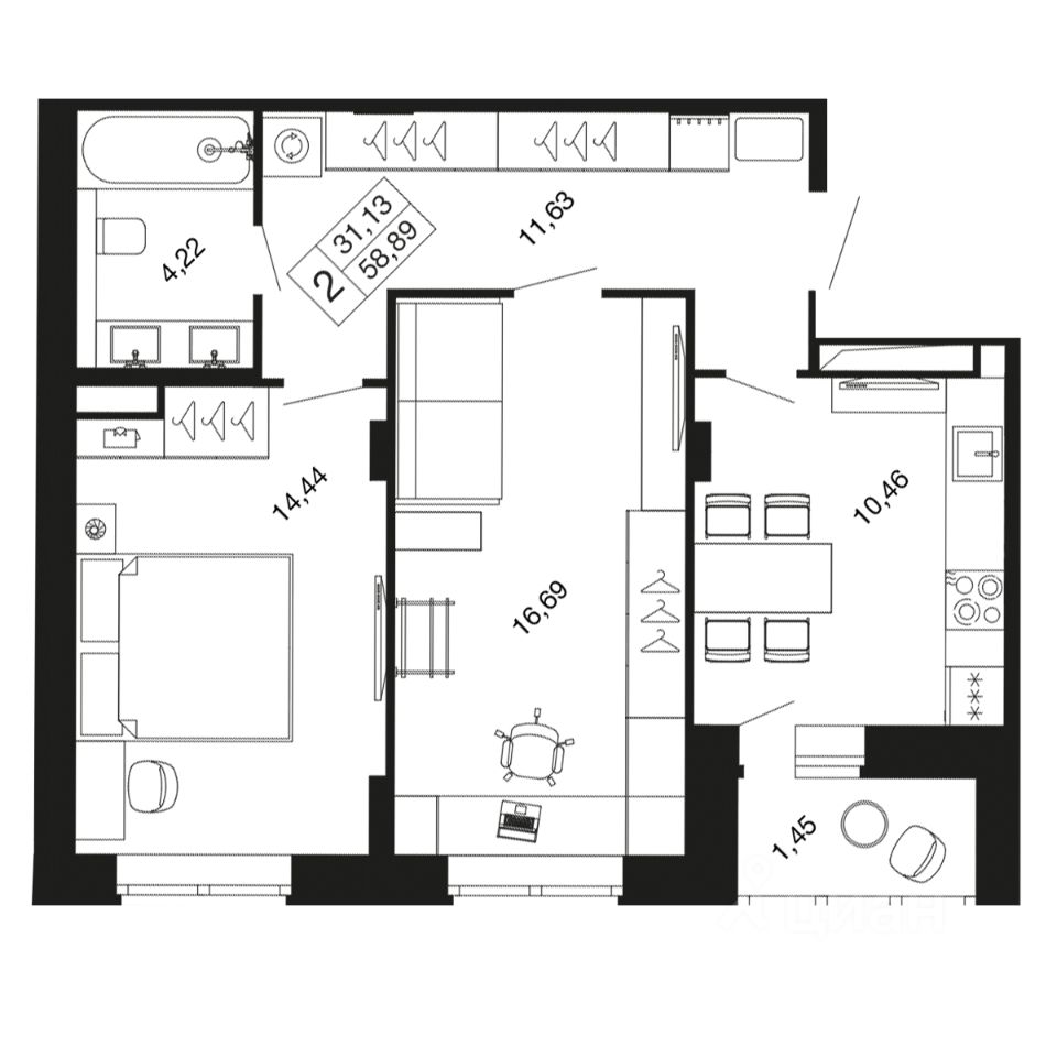 2-комн. квартира в ЖК комфорт-класса "Времена года" на 8 этаже в 9 этажном корпусе 11. Общая площадь: 58.9 кв.м., жилая: 31.13 кв.м. Высота потолков 2.76 м. "Времена года" современный жилой комплекс комфорт-класса, расположенный в тихом и зеленом подмосковном городе Апрелевка, в 1 минуте пешком от станции МЦД-4 "Победа".