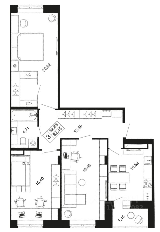 3-комн. квартира в ЖК комфорт-класса "Времена года" на 3 этаже в 9 этажном корпусе 11. Общая площадь: 82.5 кв.м., жилая: 52.88 кв.м. Высота потолков 2.76 м. "Времена года" современный жилой комплекс комфорт-класса, расположенный в тихом и зеленом подмосковном городе Апрелевка, в 1 минуте пешком от станции МЦД-4 "Победа".