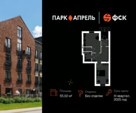 Продаётся 1-к квартира 19 в сданном корпусе общей площадью 55.02 кв.м на 1-м этаже 4 этажного дома. Без отделки.