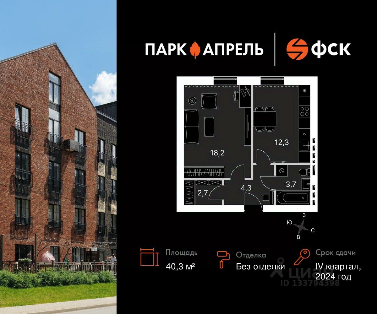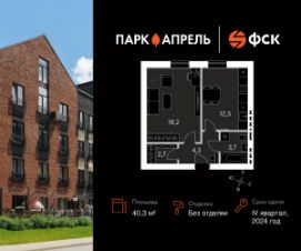 Продаётся 1-к квартира 47 в сданном корпусе общей площадью 40.3 кв.м на 3-м этаже 4 этажного дома. Без отделки.