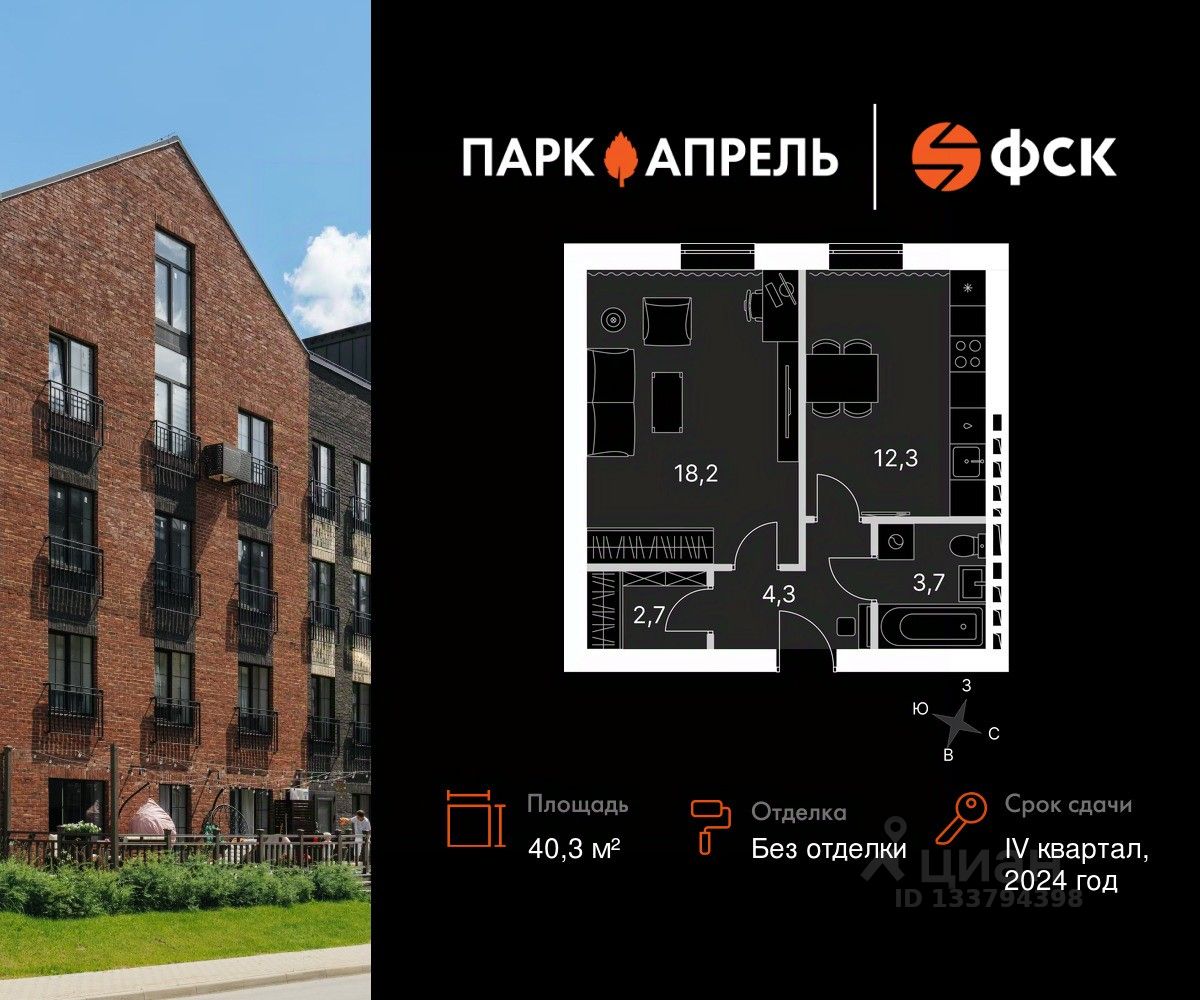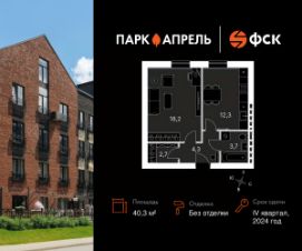 Продаётся 1-к квартира 53 в сданном корпусе общей площадью 40.3 кв.м на 4-м этаже 4 этажного дома. Без отделки.