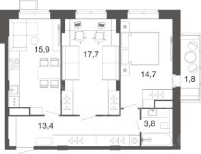 Продается большая двухкомнатная квартира с 2-умя отдельными спальнями и кухней (площадью 16 кв.м.!), площадью 67,3 кв.м линейной планировки c панорамным видом и с панорамной лоджией на 2 этаже в тихом районе с развитой инфраструктурой, в трех минутах ходьбы от МЦД!
