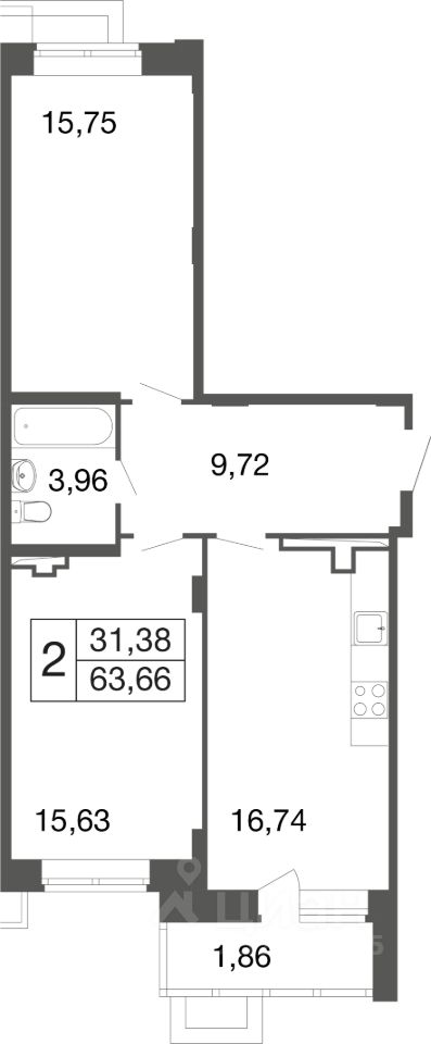 Продаётся 2-комнатная квартира в сданном доме (жилой комплекс Времена Года, к12 (Корпус 12)), срок сдачи: I-кв. 2026, общей площадью 63.66 кв.м., на 1 этаже. Расположение, транспортная доступность