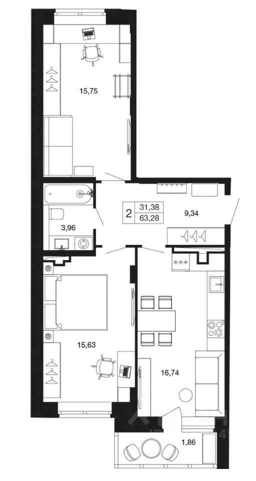 Продаётся 2-комнатная квартира в сданном доме (жилой комплекс Времена Года, к12 (Корпус 12)), срок сдачи: I-кв. 2026, общей площадью 63.3 кв.м., на 6 этаже. Расположение, транспортная доступность