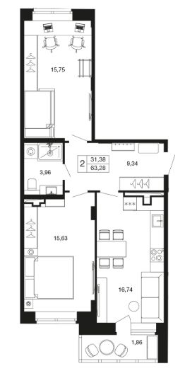 Продаётся 2-комнатная квартира в сданном доме (жилой комплекс Времена Года, к12 (Корпус 12)), срок сдачи: I-кв. 2026, общей площадью 63.3 кв.м., на 9 этаже. Расположение, транспортная доступность