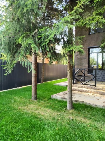 Дом полностью огорожен забором.