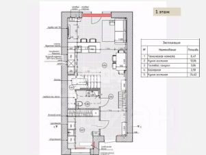 1 этаж - Кухня-гостиная 36 метров. Прихожая. Техническая комната 8,5 метров (постирочная, сушильная, кладовая) . Гостевой санузел. Бойлерная. Выход на участок, площадью 1,5 сотки.