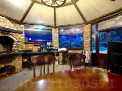 Уютная беседка (кирпич - камень) с мангалом площадью 32 кв.м. Просторный вольер для собаки. Домик для персонала.