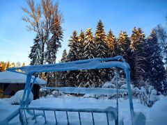 А так же 2-х этажный, очень крепкий дом из бруса 1958 года постройки площадью 130 кв. м, генеральская дача прежней эпохи. На первом этаже: коридор, кухня, гостиная с русской печью, две комнаты, уютная веранда с широким окнами на три стороны и вторым выходом в сад, с/у с душевой, котельная. На 2-м этаже этаже две спальни, одна из них с балконом и шикарным видом на просторный живописный участок, кабинет-библиотека, с/у с душем.