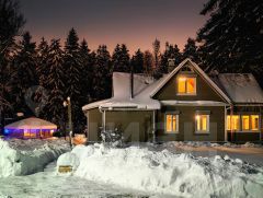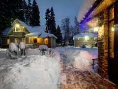 А так же 2-х этажный, очень крепкий дом из бруса 1958 года постройки площадью 130 кв. м, генеральская дача прежней эпохи. На первом этаже: коридор, кухня, гостиная с русской печью, две комнаты, уютная веранда с широким окнами на три стороны и вторым выходом в сад, с/у с душевой, котельная. На 2-м этаже этаже две спальни, одна из них с балконом и шикарным видом на просторный живописный участок, кабинет-библиотека, с/у с душем.