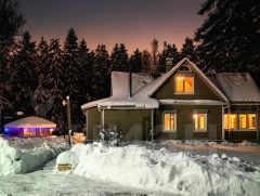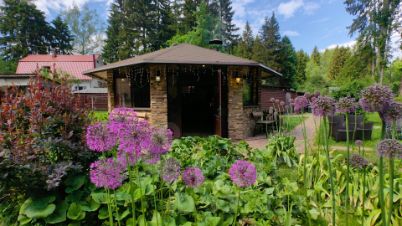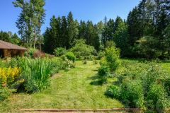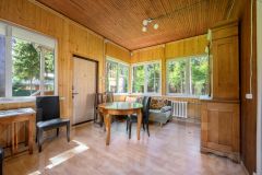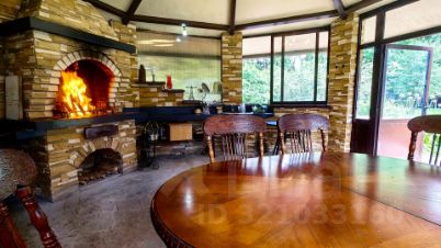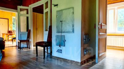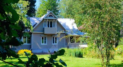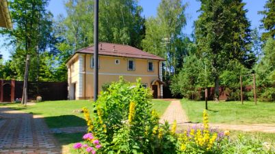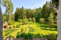 А так же 2-х этажный, очень крепкий дом из бруса 1958 года постройки площадью 130 кв. м, генеральская дача прежней эпохи. На первом этаже: коридор, кухня, гостиная с русской печью, две комнаты, уютная веранда с широким окнами на три стороны и вторым выходом в сад, с/у с душевой, котельная. На 2-м этаже этаже две спальни, одна из них с балконом и шикарным видом на просторный живописный участок, кабинет-библиотека, с/у с душем.