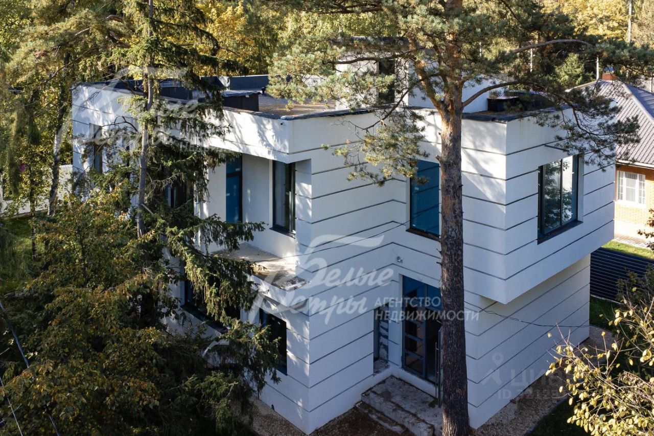 Код объекта в БД Агентства: 217-936. Фрунзевец к/п. Дом под ключ в стиле хай-тек с эксплуатируемой кровлей и панорамными окнами в стародачном поселке Фрунзевец. Функциональная планировка. Все коммуникации разведены, теплые полы на 1 этаже. Лестница ж/б. Участок с вековыми соснами и елями, находится в середине поселка. Забетонированная площадка под авто перед домом и откатные ворота. В шаговой доступности развитая инфраструктура и городской транспорт.