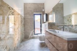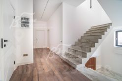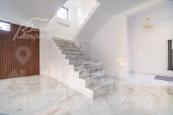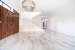 Описание внутренней отделки: стены окрашены, на полу керамогранит в общих помещениях и с/у, ламинат в спальнях и холле 2 этажа. Лестница бетонная широкая, ступени отделаны керамогранитом. Натяжные потолки. Все коммуникации разведены, теплые полы на 1 этаже, радиаторы стальные везде, внутрипольные конвекторы на 1 этаже. Сантехника установлена..