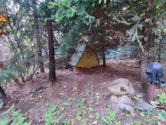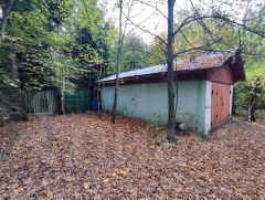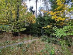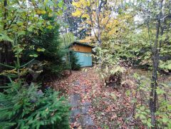 На участке — дом 1950 года (можно использовать под временное проживание или реконструкцию), гараж, хозблок, площадка под авто.