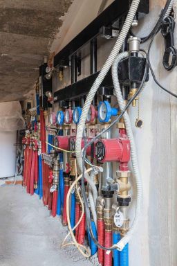 Выполнен монтаж всех коммуникаций: разведена электрическая проводка, канализация, система отопления, водоснабжения, вентиляции, подключен газ, установлен бойлер.