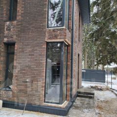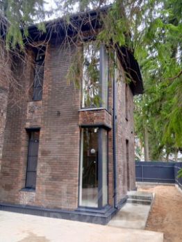 Основные стены из газосиликатных блоков и облицован кирпичом. Фундамент армированный ленточный на сваях.