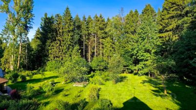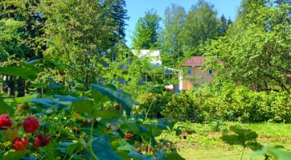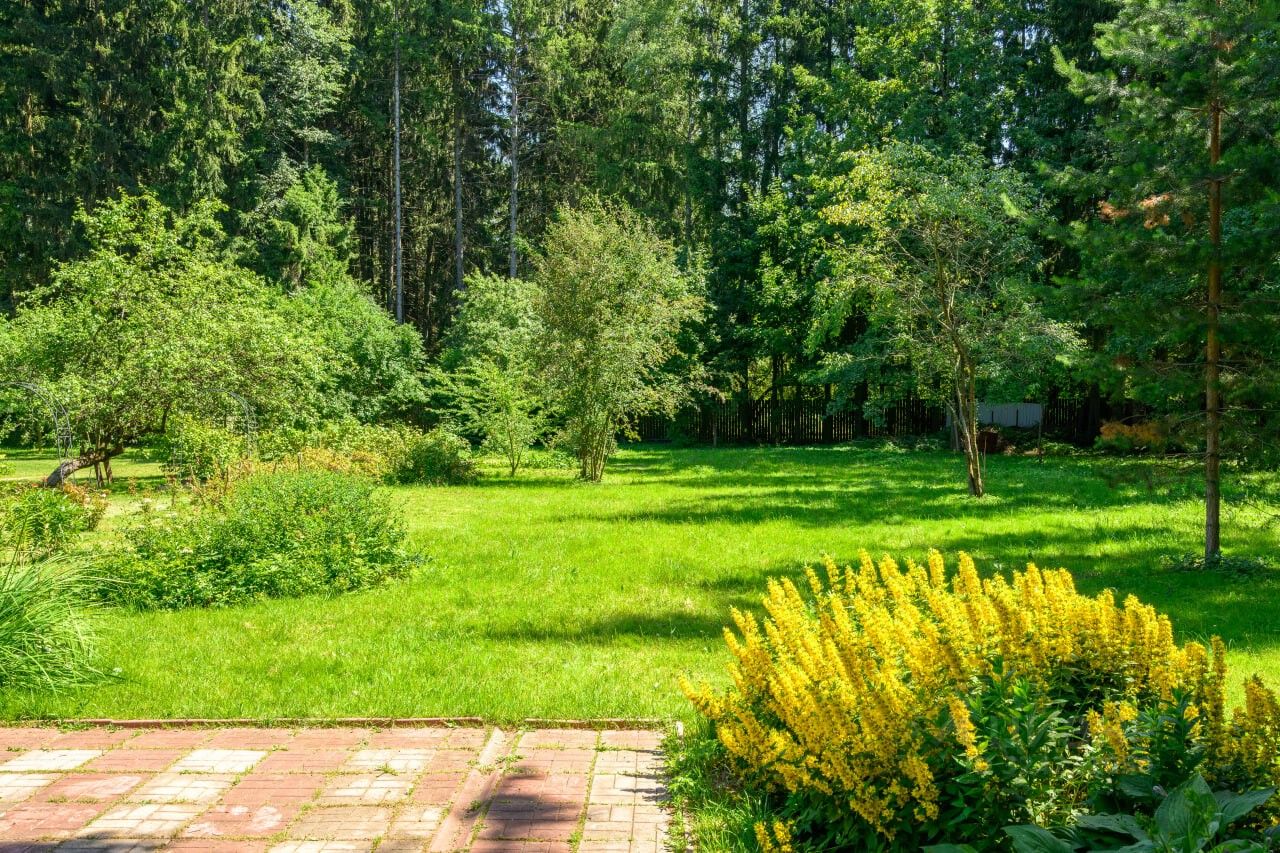 Участок правильной формы в окружении вековых елей в стародачном поселке.