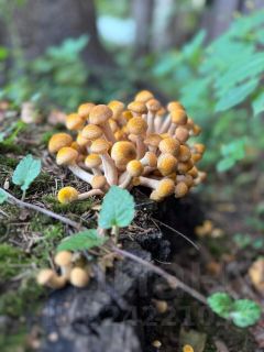 Грибы на фото, опята и белые в том числе растут на участке.