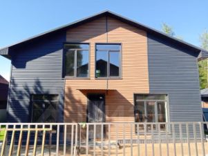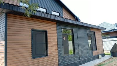 Основные стены из газосиликатных блоков, утеплён и облицован сайдингом. Фундамент ленточный армированный на сваях.По планировке: на первом этаже кухня-гостиная, комната, сан узел, на втором этаже 3 спальни и сан. узел .