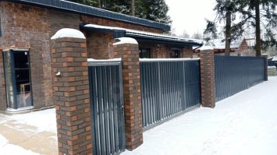 Основные стены из блоков, утеплён и облицован кирпичом. Фундамент ленточный армированный на сваях.