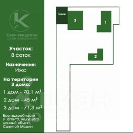 На территории участка 8 сот располагается три строения.