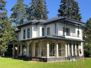 Фрунзовец - природная жемчужина на рынке Киевки! Абсолютно новый уникальный дом площадью 280 кв.м, построенный по строительным технологиям на участке 12,4 сотки с вековыми елями и прекрасным зеленом газоном в тихом лесном поселке в 26 км от МКАД по Киевскому шоссе.