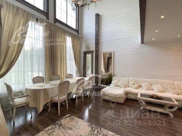 1 этаж зонирован деревянными брусьями, кухня Икеа, полностью укомплектована, все дверцы и ящики с доводчиками, мощная вытяжка. В обеденной зоне раздвигающийся стол, также есть большая барная стойка находящаяся на острове на кухне. В гостиной модульный диван раскладывается (+ 2 спальных места).